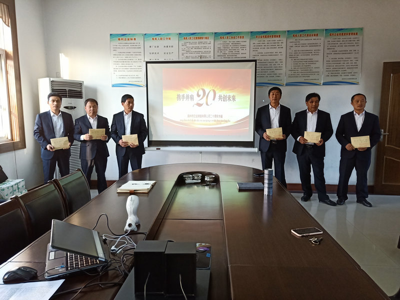 在這一特殊的日子里,公司在會議室召開二十周年總結表彰大會,回首過去、展望未來并發放愛崗敬業獎!會后所有員工合影留念。